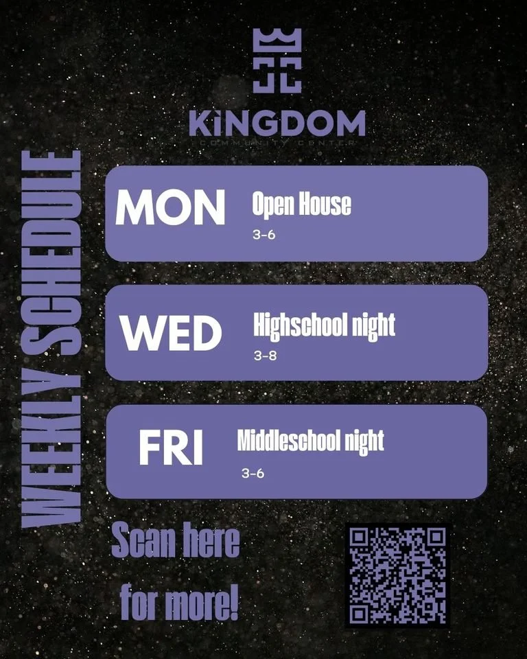 Looking for a midweek boost? Come hang out with friends, laugh hard, eat good food, and dive into God’s Word together. HS Kingdom Night is all about fun, community, and growing in faith. Whether you’re new, curious, or already plugged in, there’s a spot for you!